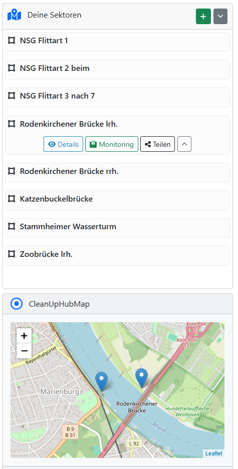 Weiter unten findest du die CleanUpHub-Community-Map. Hier kannst du sowohl deine eigenen Sektoren als auch die der anderen anzeigen lassen.