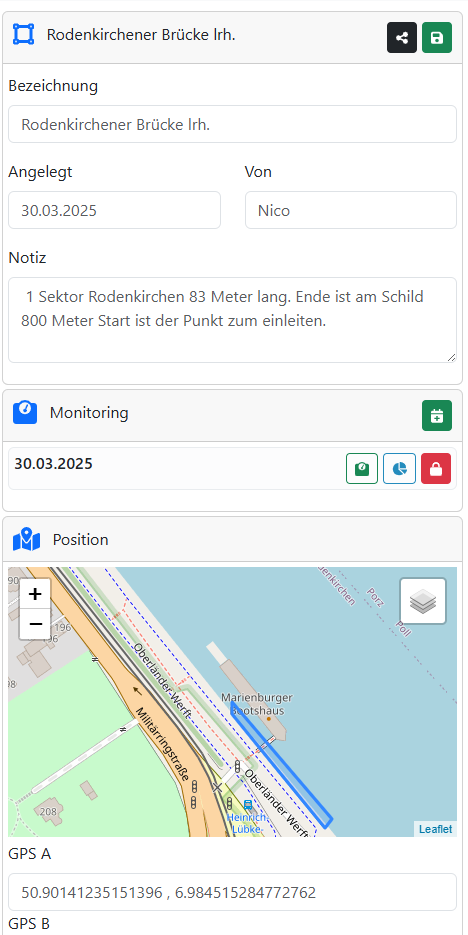 Im Bereich „Monitoring“ kannst du mit neue Monitoring-Termine anlegen. Mit führst du eine Schnellanalyse der bereits erfassten Daten zum Sammelfeld durch.