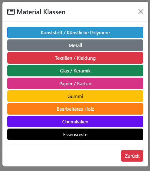 Sollte noch kein Termin angelegt worden sein, kannst du mit einen neuen Termin anlegen.Bestimme den Gegenstand: Mit der Filterfunktion kannst du die Materialklasse filtern (empfohlen).