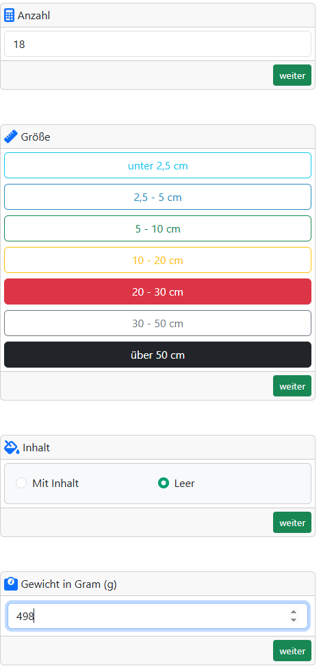 Danach gibst du Anzahl, Größe, Inhalt und Gewicht an.