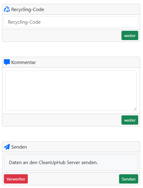 Wenn auf der Verpackung ein Recycling-Code zu erkennen ist, kann er Spalte Recycling-Code angegeben werden. Zum Abschluss kann noch ein Kommentar hinterlassen werden.